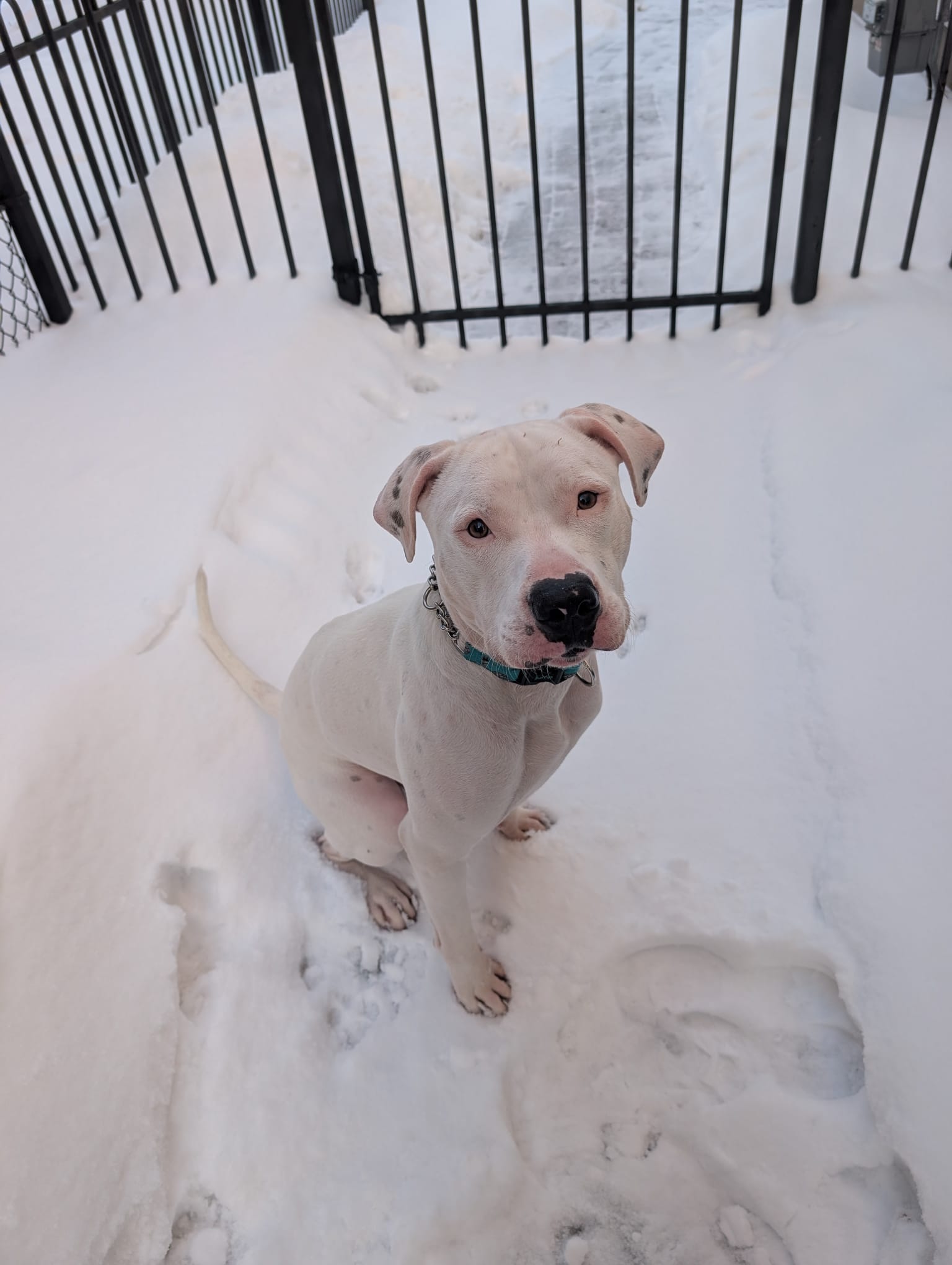 He loves other dogs and currently lives with a foster dog he adores playing with. Hitchy would thrive in a home with another friendly, playful pup who can match his energy. (He’s got that fun puppy spirit and could play all day, then sleep soundly through the night!)