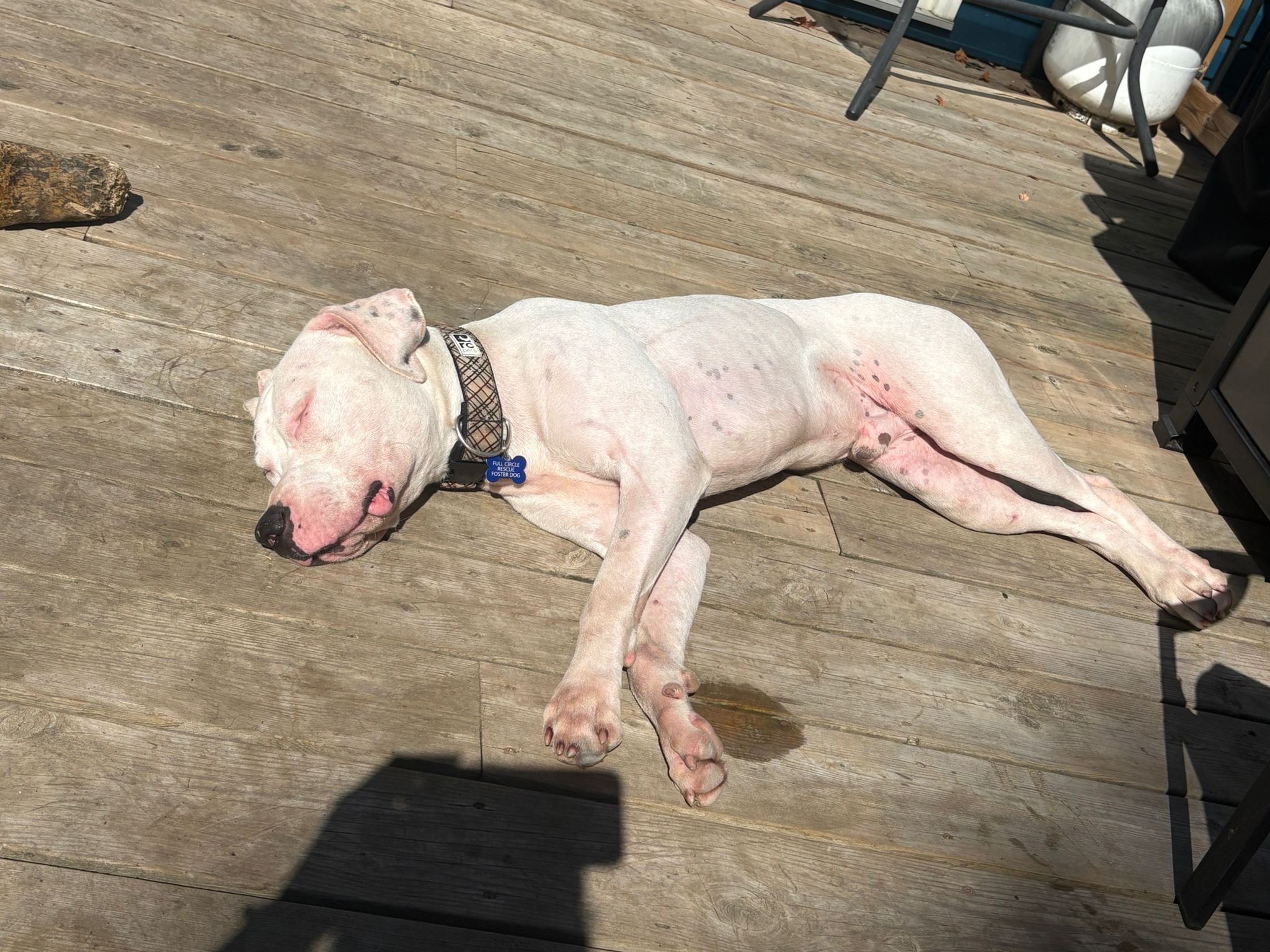 He’s also a total sweetheart… loves affection, meeting new people, and even enjoys bath time!