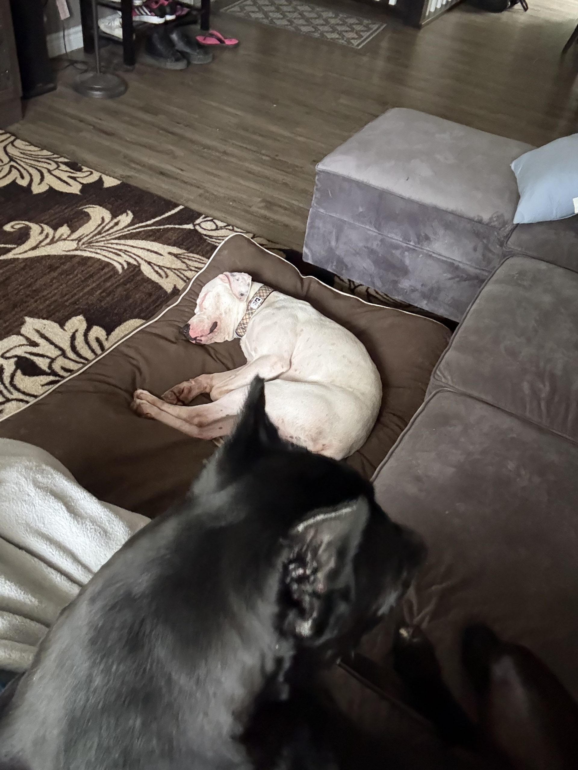 Hitchy is house trained and has done wonderfully being left alone for long days without being destructive - such a good boy! He’s not crate trained yet, so his ideal adopter will be patient and willing to continue helping him learn that skill at his own pace.