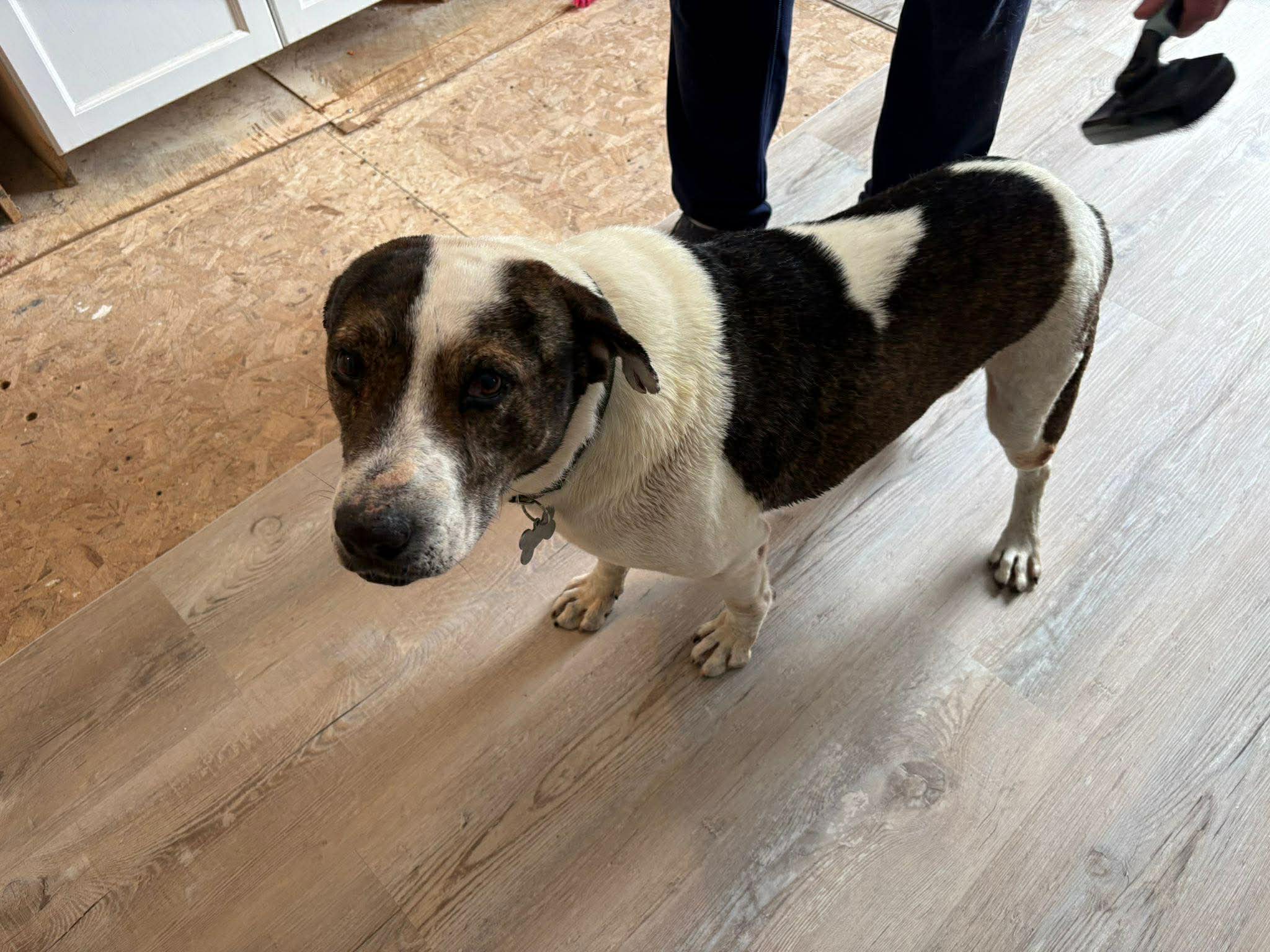 Backstory: Dewe lived in a small town and was often seen lying outside a hardware store, covered in mange. Someone would occasionally give him Bravecto to help, but he was clearly neglected. One day, we asked about him and were told, “Take him, we don’t want him, we’re going to abandon him.” That’s when we stepped in.