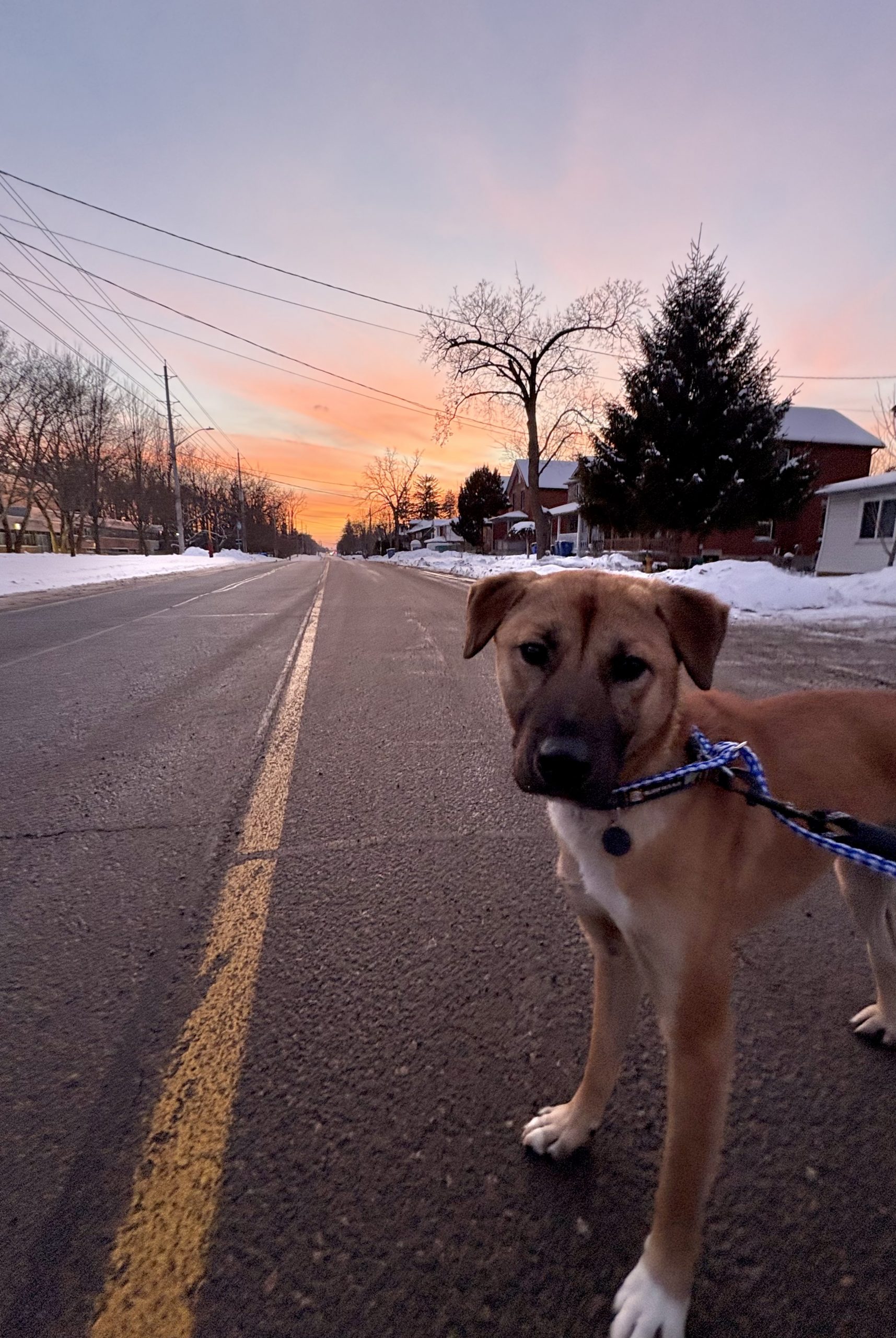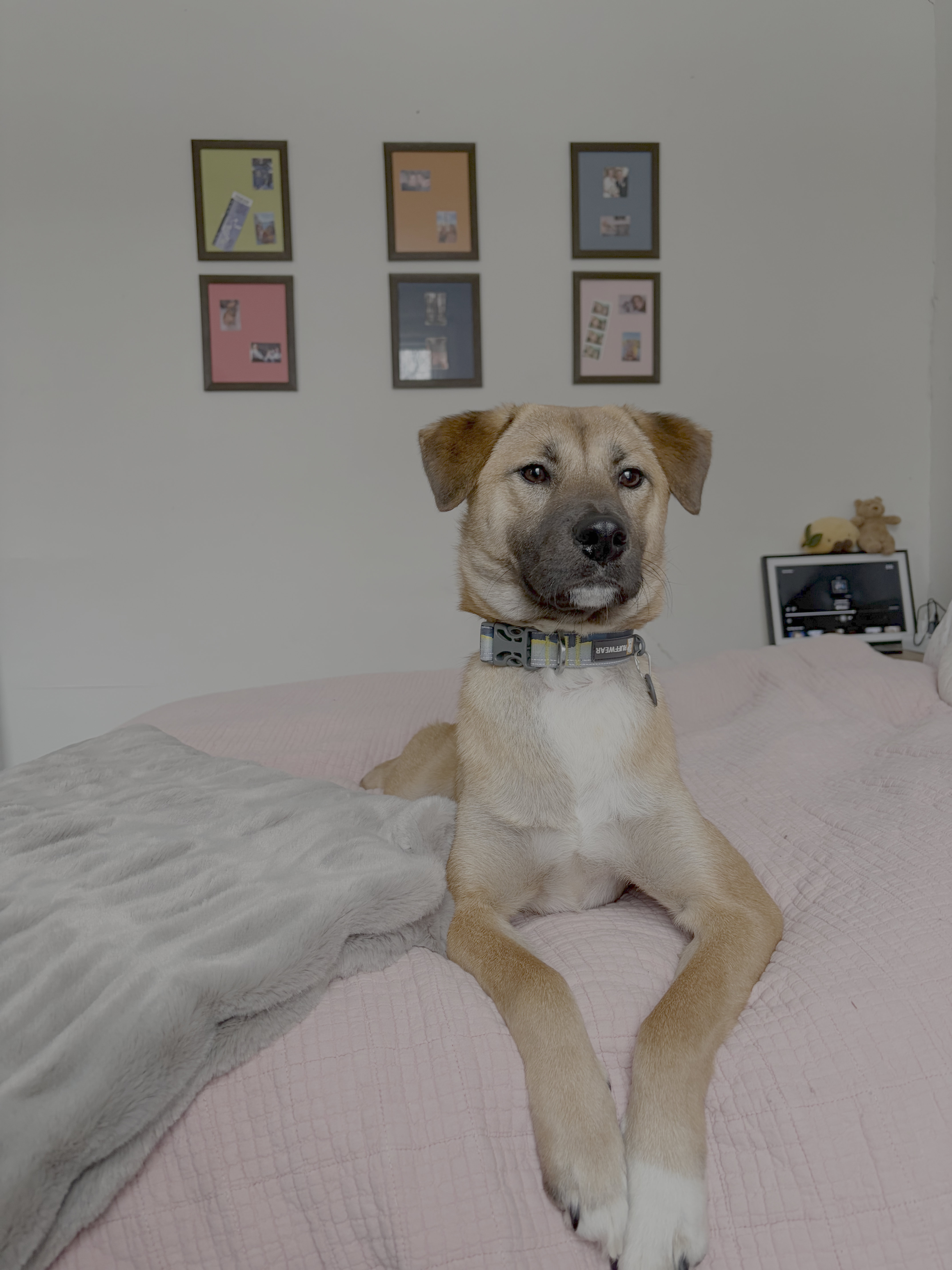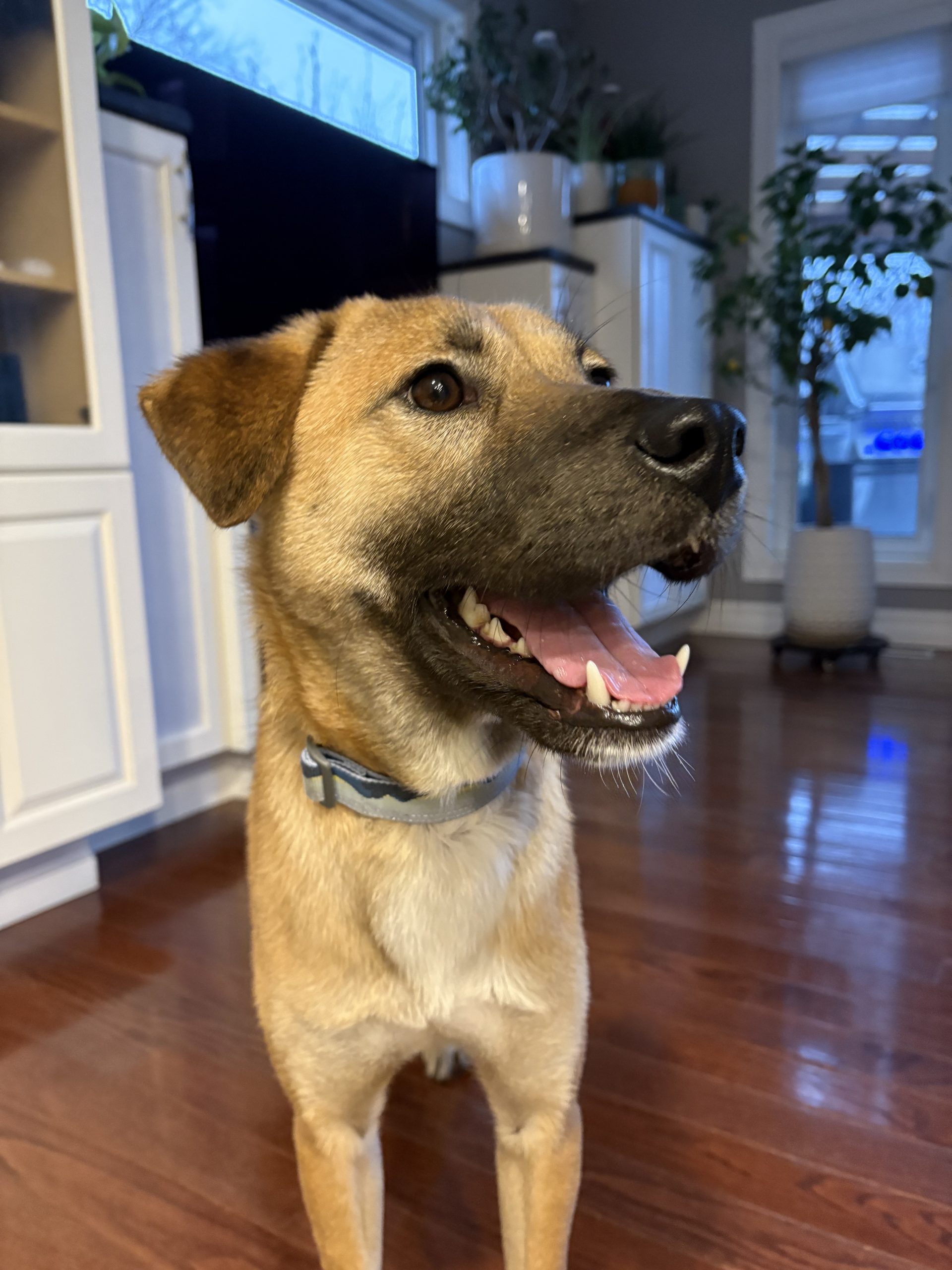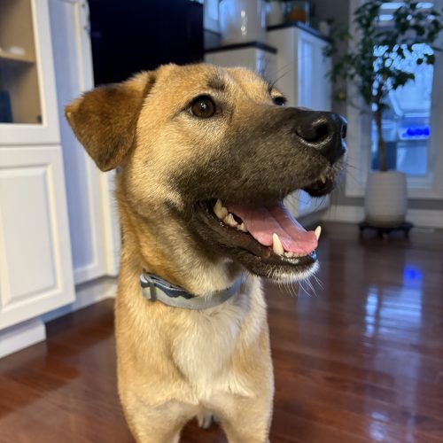 Haneul loves being near his people, especially the ladies (though he’s happy to warm up to men with a little extra patience). He is comfortable alongside cats and gets along famously with calm dogs. Haneul is house trained and knows how to settle on his own and find a quiet place to relax. You can often find him sitting at the window just watching the birds and squirrels or laying peacefully on his dog bed. Haneul loves being outside and would do best in a house that has a fenced yard. Haneul absolutely lives for his daily strolls! While he’s still learning that the leash is not a race, he’s working on his manners to be your best hiking partner.