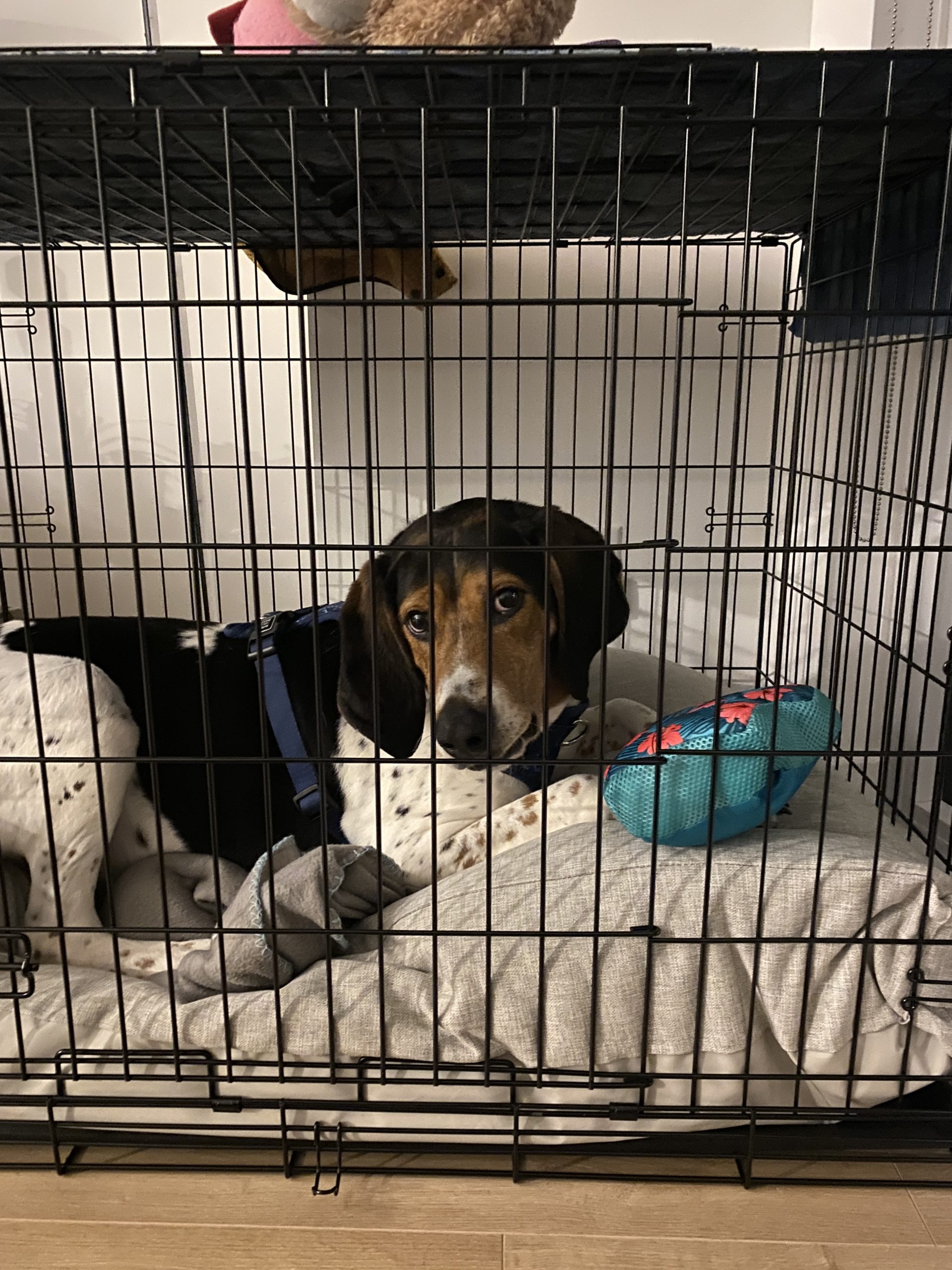 Master is crate trained and doing well learning his potty routine. He does well with being left alone for long periods of time and shows no signs of separation anxiety. He’s good with older kids and enjoys playtime, though he can be a little vocal when he’s having fun. Master is a curious boy who loves to follow his nose. Plush toys are his weakness, and tug-of-war is one of his favourite games.