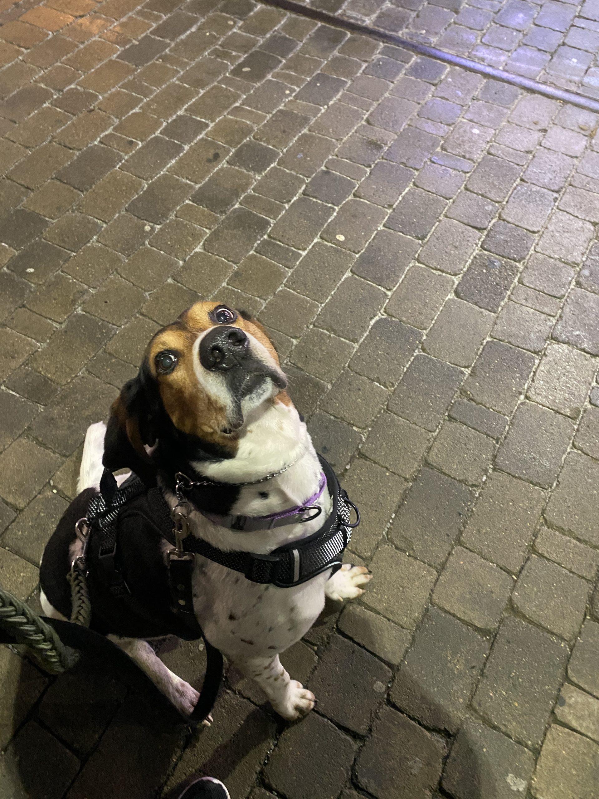 He’s polite with other dogs, he is happy to sniff and then move on but would truly shine as the only dog in the home where he can soak up all the love. Master will need a home without cats. Loud noises can startle him, and he may be a bit unsure about having his hind end touched at first, but once trust is built, he relaxes and shows his sweet, affectionate side.