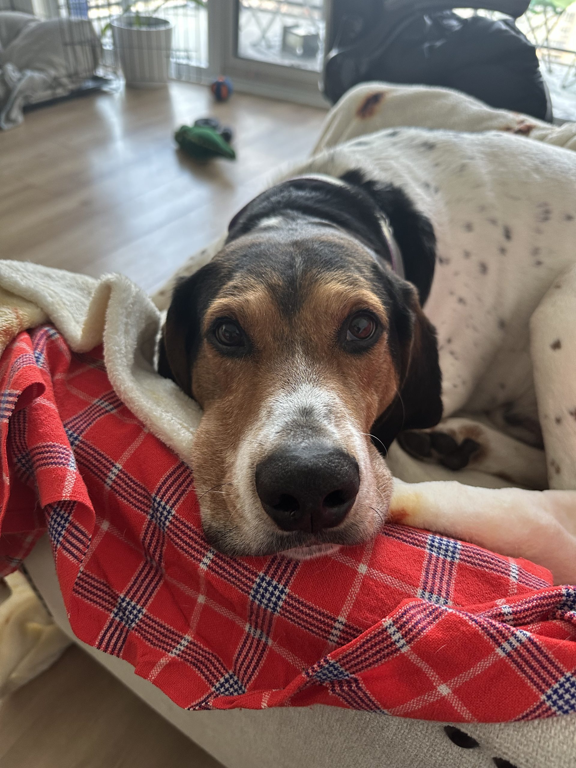 If you’re looking for a gentle, loyal companion who will happily be your shadow and your snuggle partner, Master is ready to fill that spot in your heart and your home.
