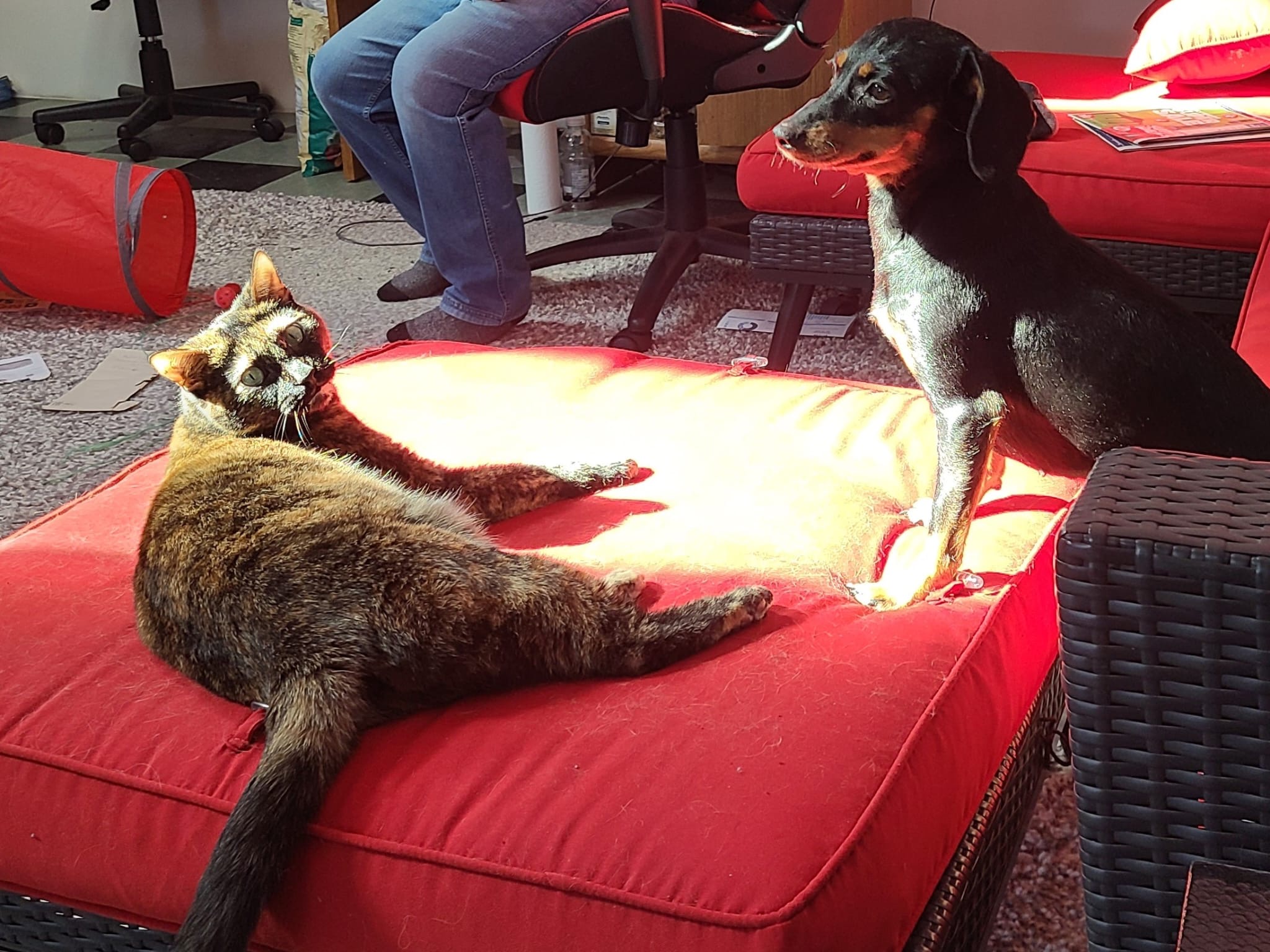 MoMo thrives on structure and routine. She loves being close to her people—whether that’s curling up nearby or simply hanging out in the same room. While she used to need constant closeness, she’s becoming more independent every day, which has been amazing to watch.