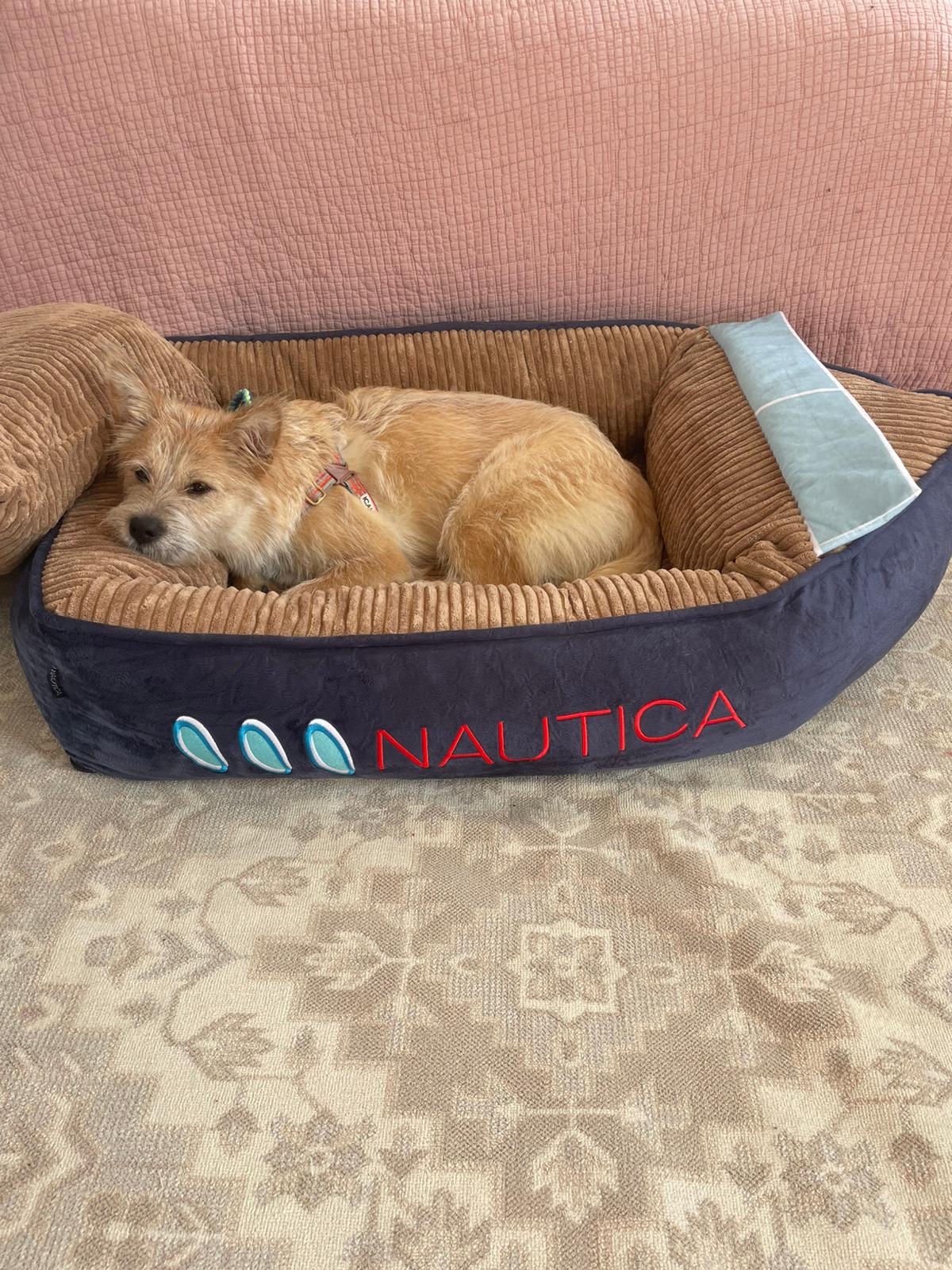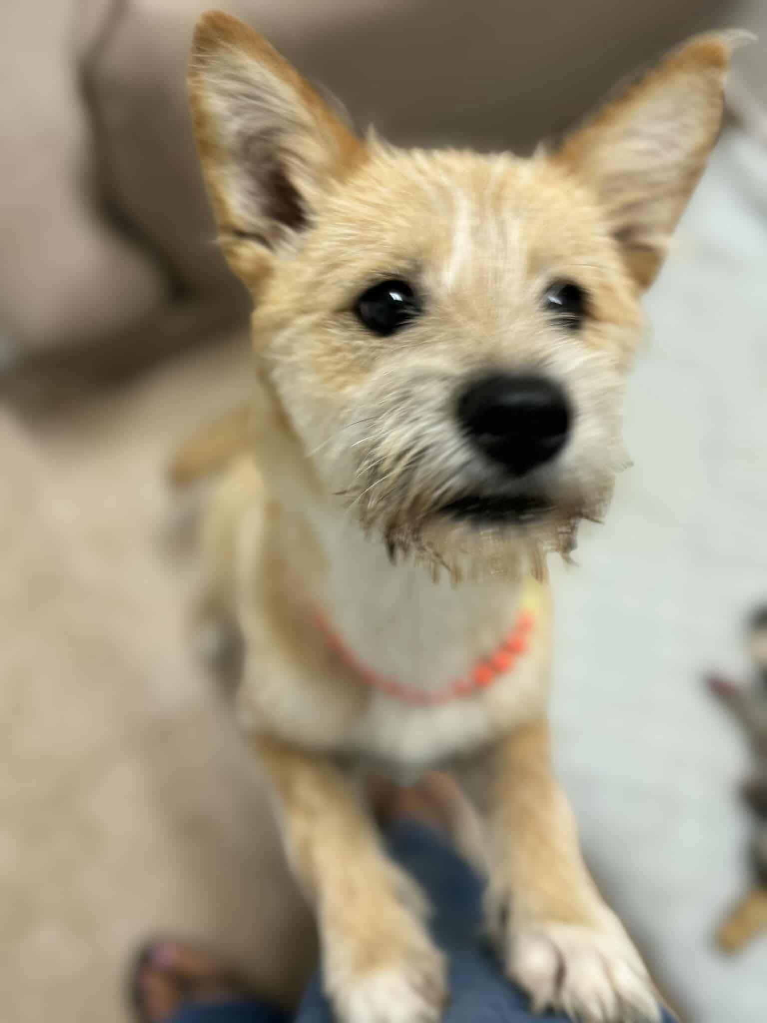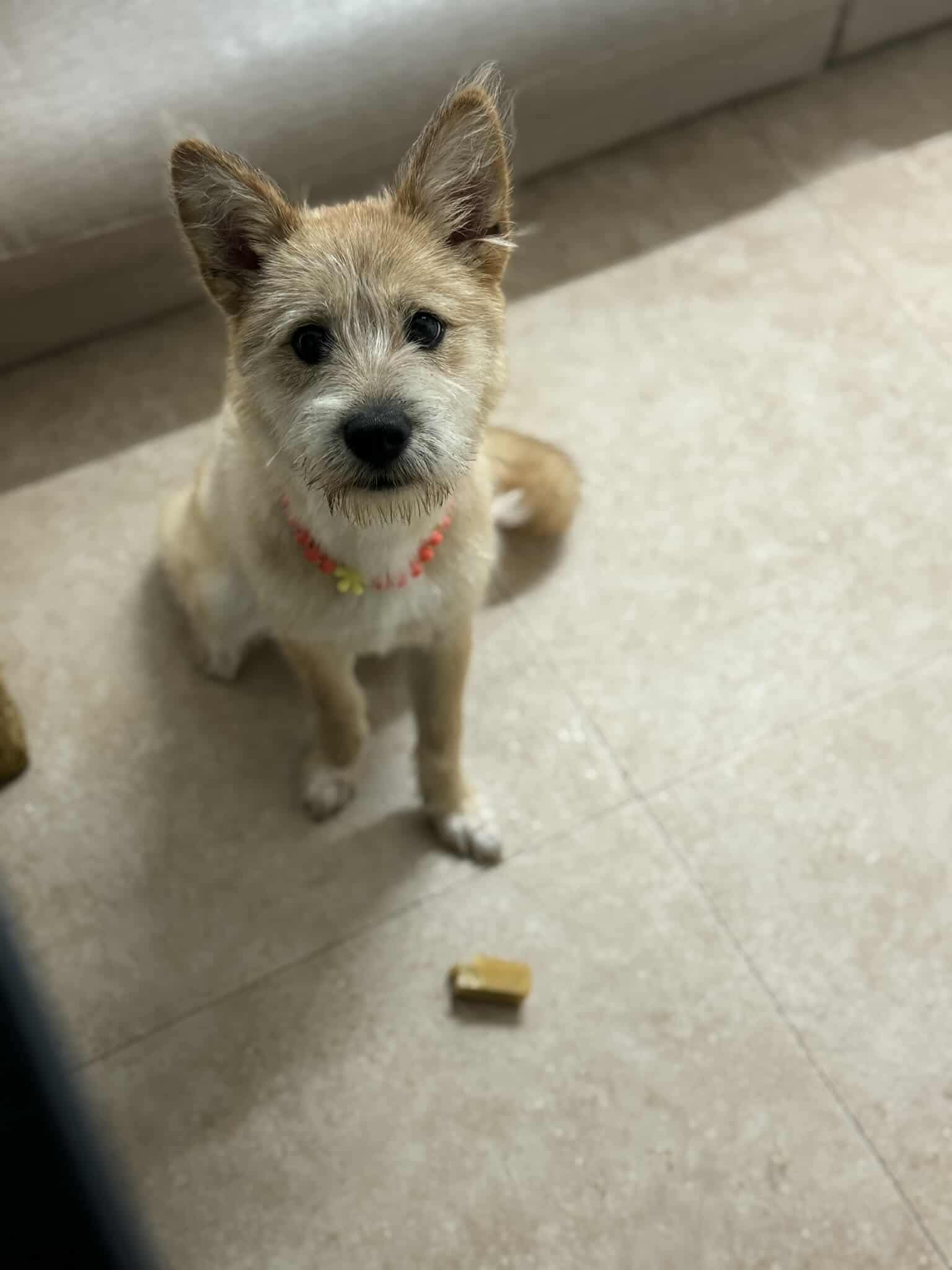 Oat is a cheerful, playful pup and easily bonds with new people. She is the smartest girl, going from pee pad trained prior to coming into Full Circle Rescue to outdoor potty trained in only two days! Oat has also mastered “sit”, “shake a paw”, and “lay down” commands. With continued training this smart girl has the possibility of becoming your trick master! Being a young pup, she continues to work on her leash manners as she is very intrigued by squirrels and other dogs while out on walks. She is also captivated by all the new smells and experiences while walking, so your walks will need to include time for her to explore and sniff around. Oat adores meeting new people and, being the affectionate lady that she is, lets all humans approach and pat her.