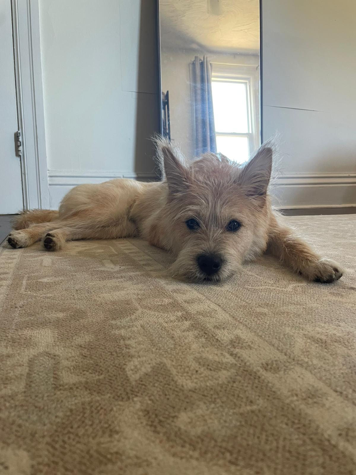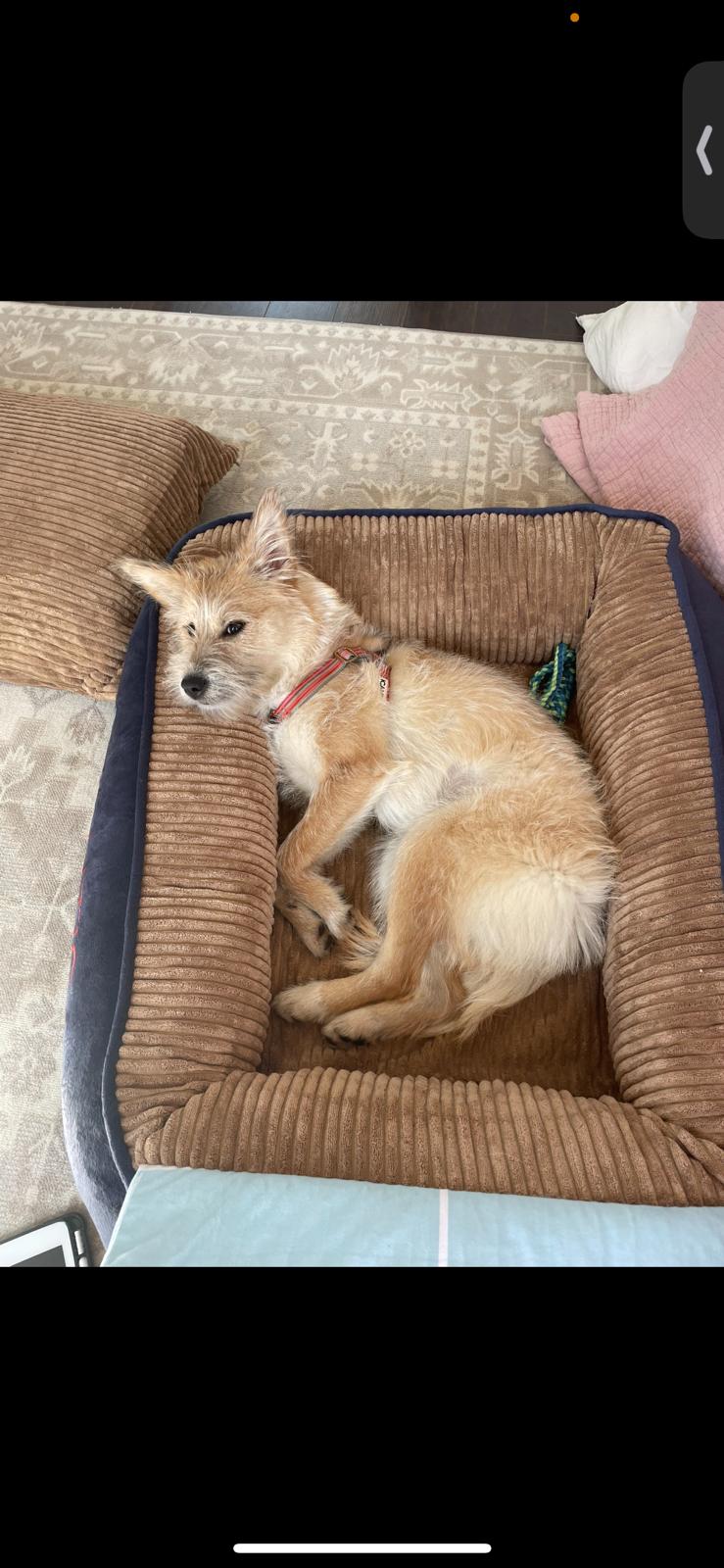 In her foster home, she loves staying close to her foster parent and enjoys playtime together - especially tug-of-war! A future adopter with a fenced in backyard would be ideal so that she can have lots of time to play her favourite game of fetch. Once she gets her zoomies and playfulness out, Oat settles in her foster home relaxing and napping her day away. Although she does not have your typical puppy energy, she does thrive on attention and companionship, so her future adopter will need to be one who wants to spend as much time with their new addition as possible. At bedtime, Oat settles in her crate after a few minutes, and sleeps all night long in her safe space, dreaming of her next morning of fun and adventure.