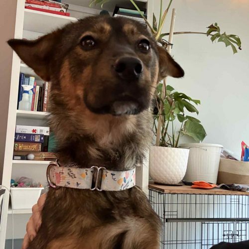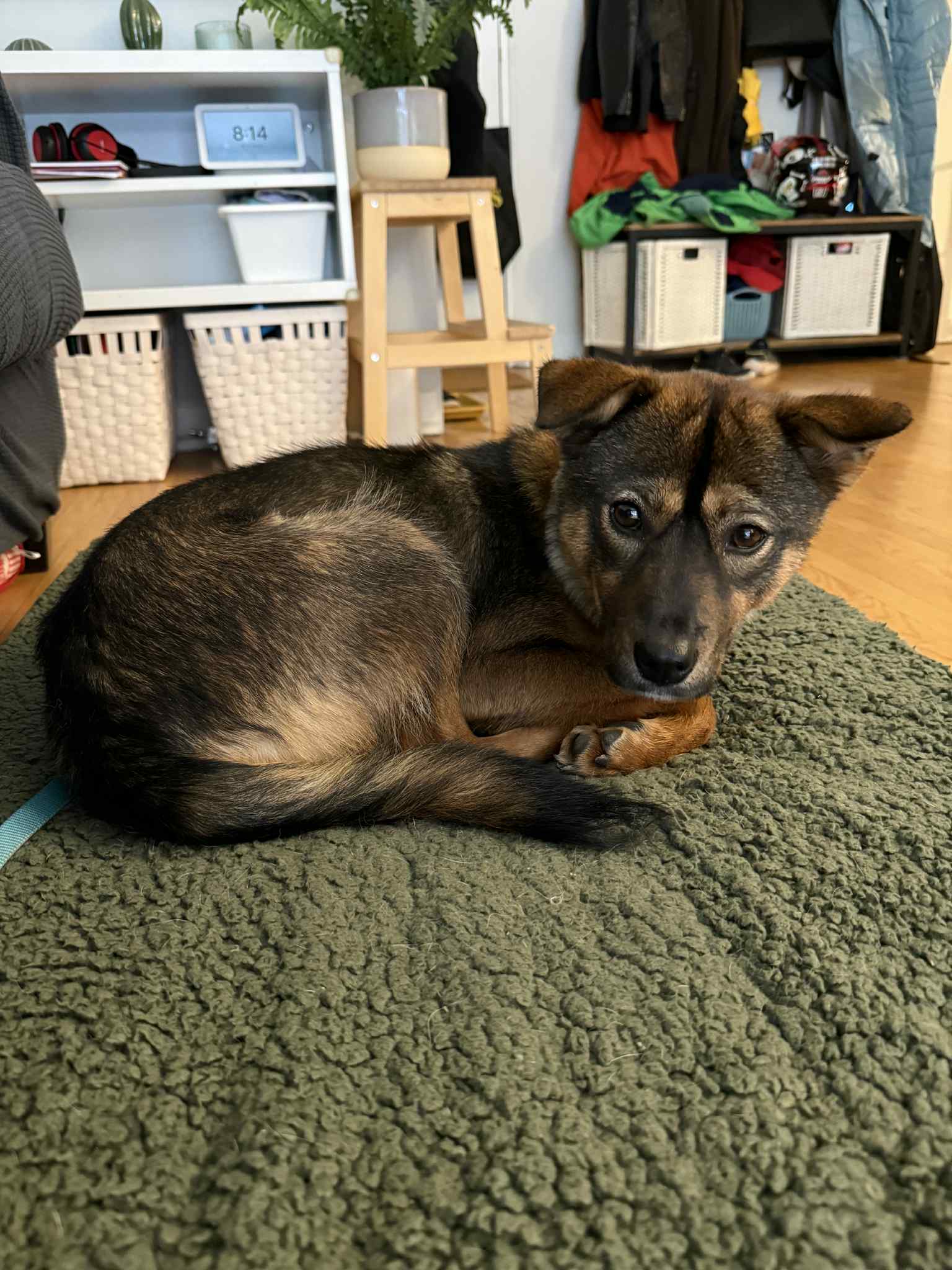 As for cats, she currently co-exists with one in her foster home - though her foster and prey drive outdoors suggests a cat-free home would be the easiest fit. She tends to chase at times and has been only around cats while supervised. She’s potty trained, learning basic cues, and making steady progress with crate training and separation confidence. She would thrive with adoptees willing to continue basic training, confidence building, structured boundaries as well as crate training. Parang can be nervous with new people and sudden movements but warms up gently and seeks affection once she feels safe. It is important for her new humans to all be equally involved in bonding so she can quickly adjust to everyone. She is eager to please, wiggles for training, and has shown remarkable progress in just two weeks. Her ideal home is patient, consistent, and ready to continue her confidence-building. She can thrive as an only dog or with a friendly, well-adjusted companion, and she does well without a yard as long as she gets daily walks.