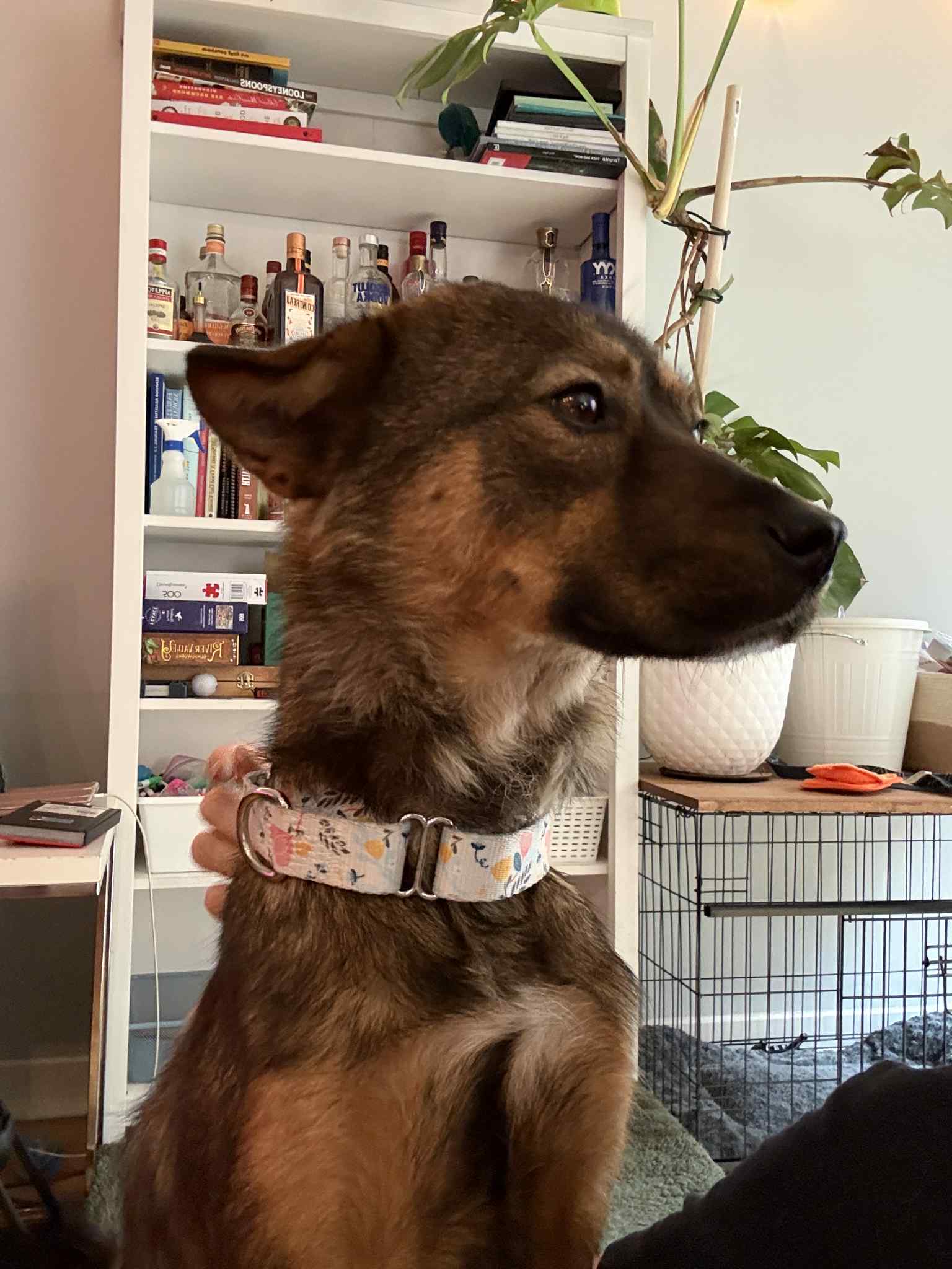 She is a gentle, observant young dog who has blossomed beautifully in foster care - hoping to soon be able to settle down in a proper permanent adoptive and loving home. She’s medium-to-low energy, adores her walks (mainly to get her sniffers on), as she is the happiest when able to follow her nose. Inside the home, she settles easily on her bed and enjoys simply being near her people. She is polite and curious with dogs on leash, will approach slowly with caution but also has a playful side to her if given proper introduction. She currently is fostered with younger kids and is respectful, however will be cautious at first and generally enjoys her own space until comfortable to come to you! dog savvy kids - would be essential.