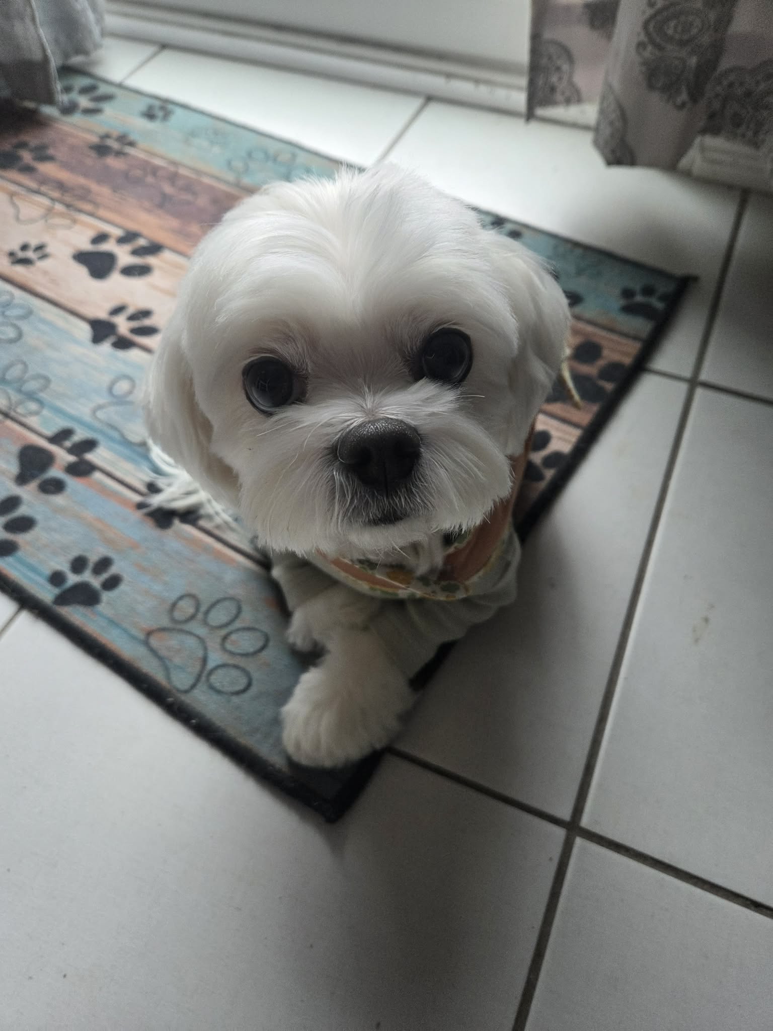 She is crate trained and currently working on her potty training with her foster. Vera may bark a little when her foster leaves the house but she settles quickly and does well once she knows she is safe.